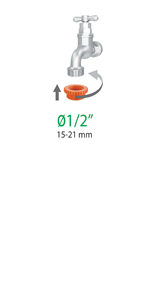 - đầu nối vòi 3/4” (20-27 mm) với bộ giảm tốc 1/2” (15-21 mm)